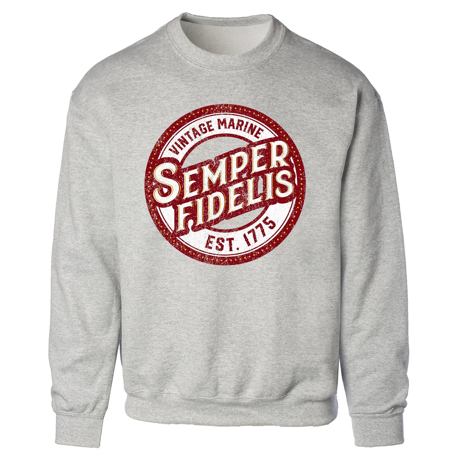 Showcase your commitment to the Corps with timeless style in the Semper Fidelis Vintage Marine Sweatshirt. This officially licensed U.S. Marine Corps product features a clean, bold design that proudly displays "Semper Fidelis" and "Vintage Marine", honoring the enduring spirit of the USMC. Made from a comfortable 50% cotton, 50% polyester blend, this piece offers a soft, breathable fit that’s perfect for everyday wear, workouts, or laid-back weekends.
