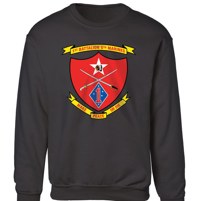 Continue to showcase your pride and dedication with this sweatshirt featuring the 1st Battalion 5th Marines patch. This sweatshirt can be personalized to include your location and year.