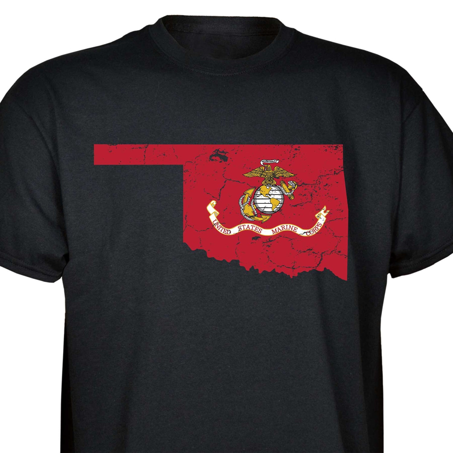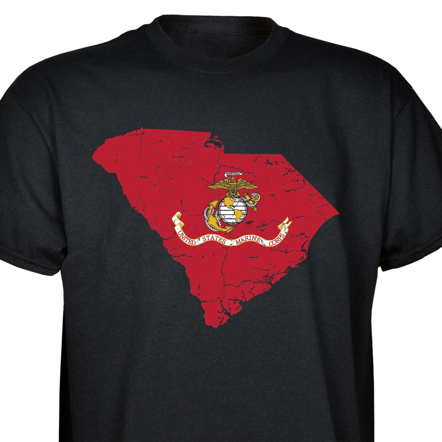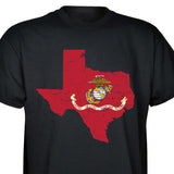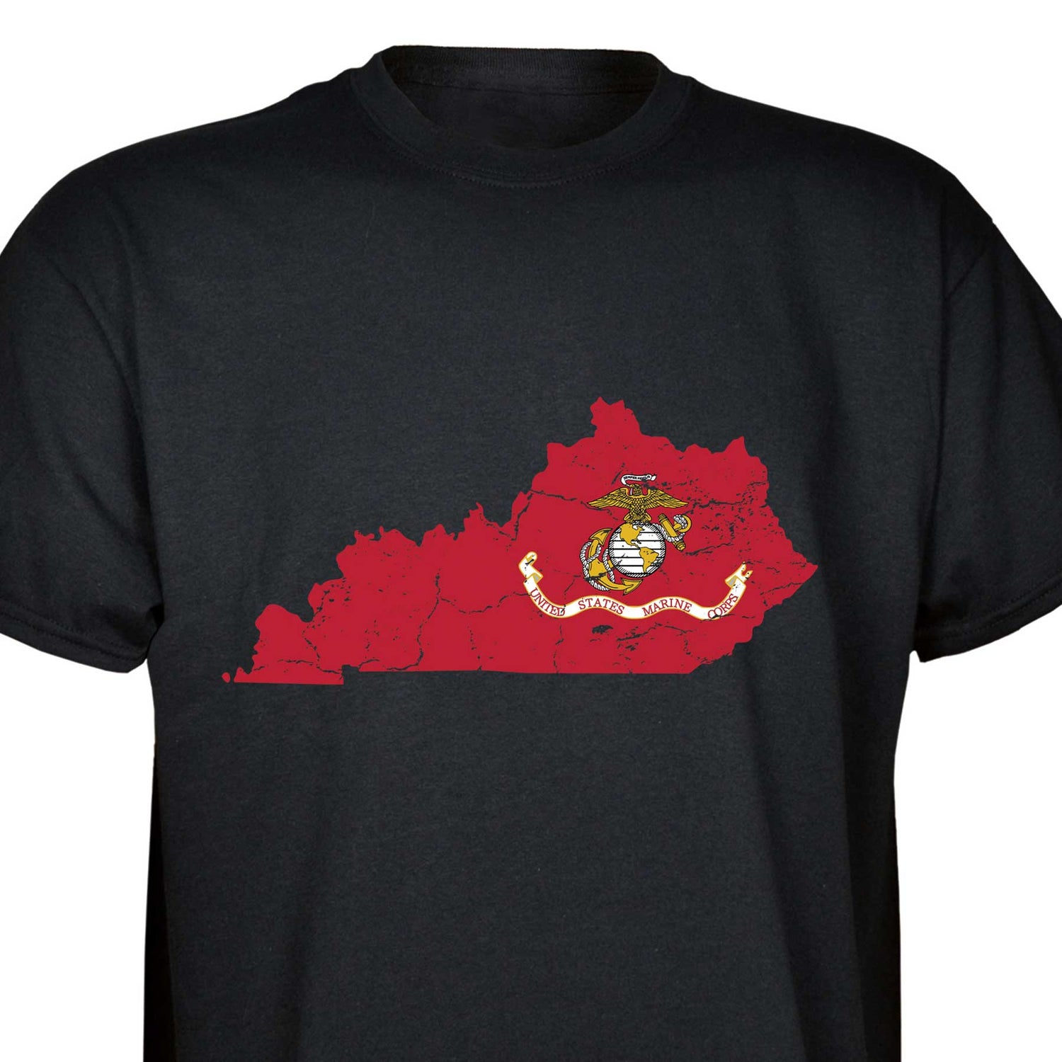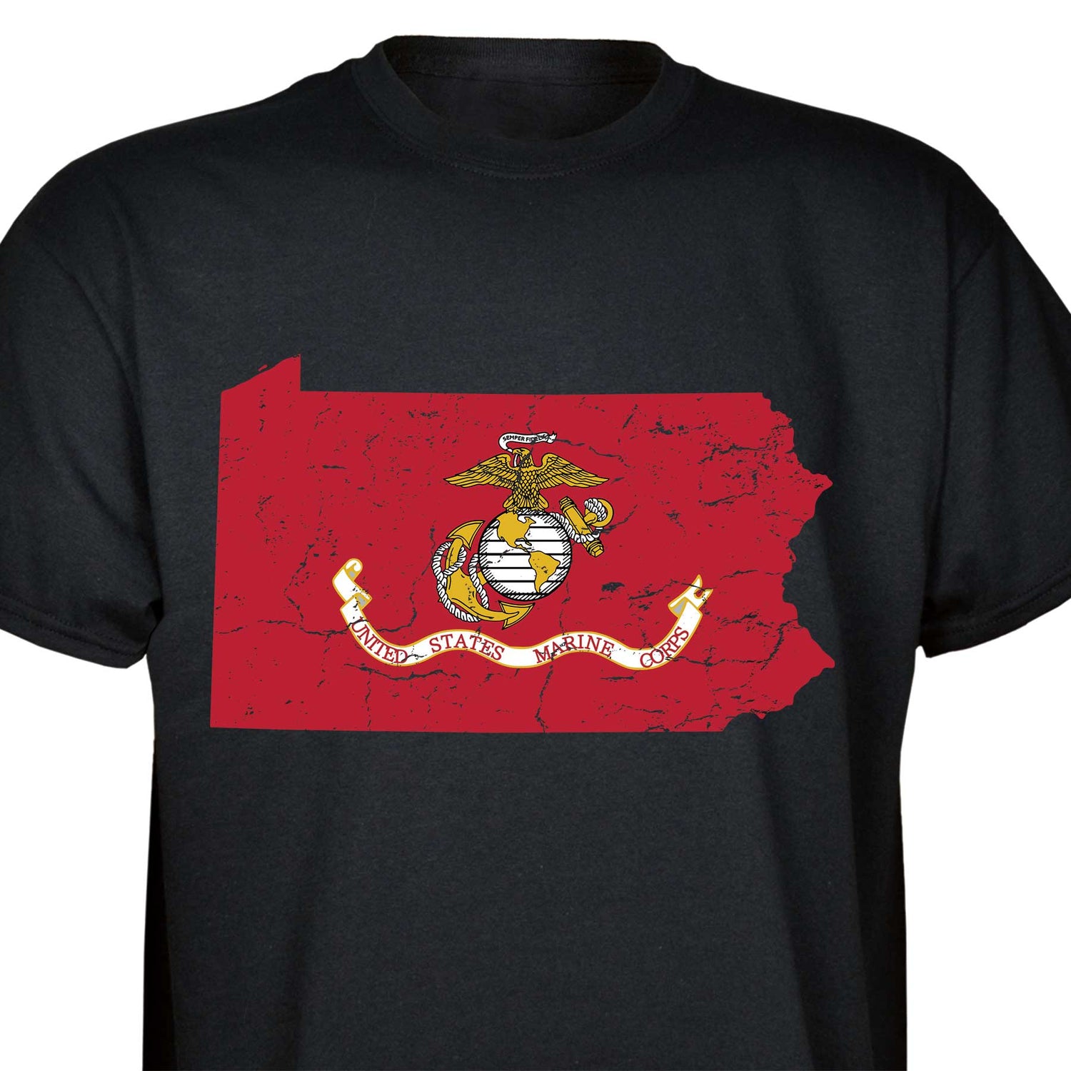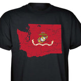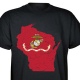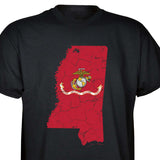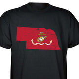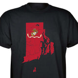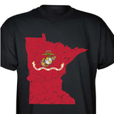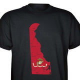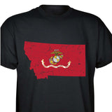 Our customizable Marine Corps Choose-Your-State T-shirt from SGT GRIT allows you to choose your home state, which then becomes the center-front red graphic on this black short-sleeve crewneck tee. The vintage-look design includes a Marine Corps EGA emblem at the center of your state. Sizes range from small to 5X. This SGT GRIT Exclusive is made of 100% pre-shrunk cotton.