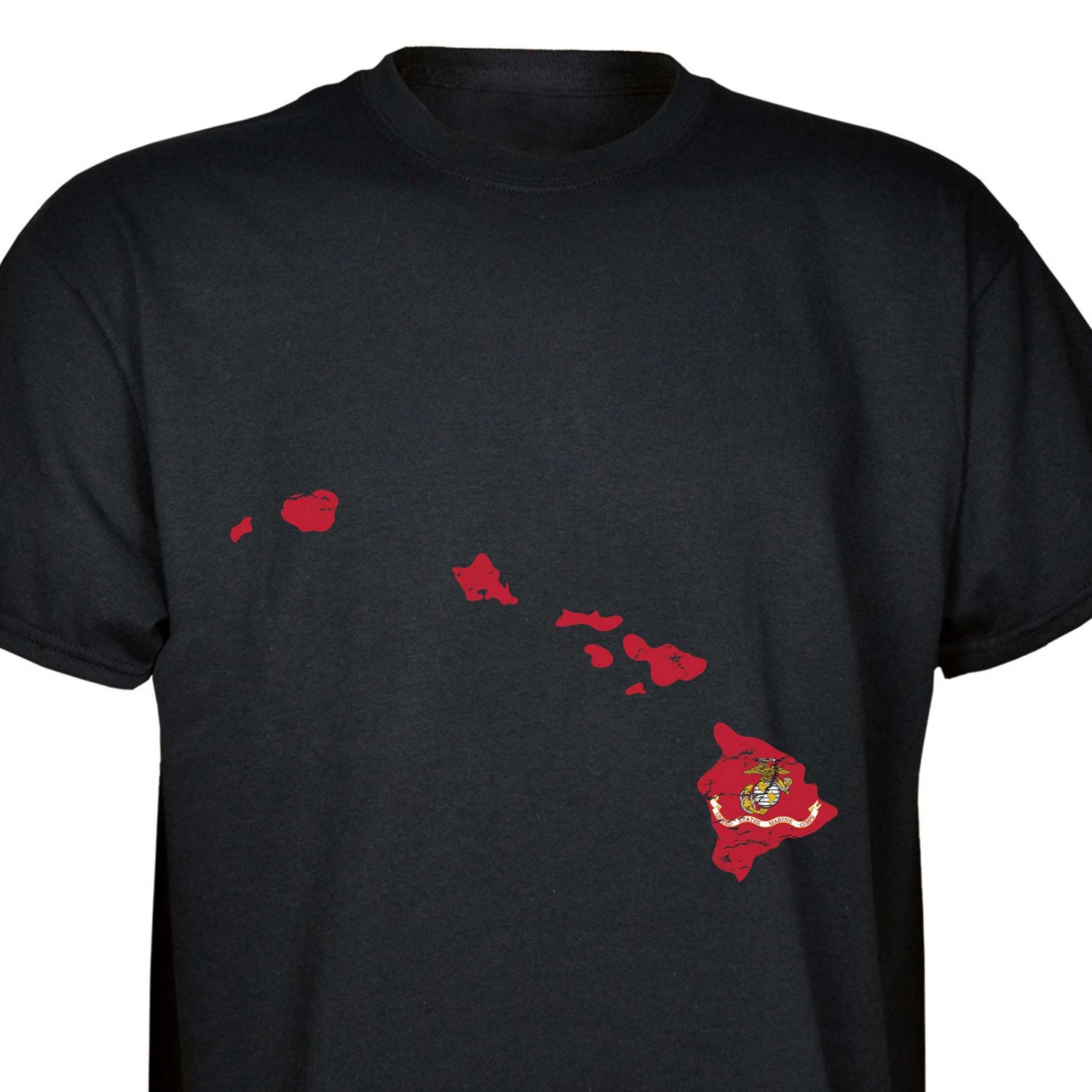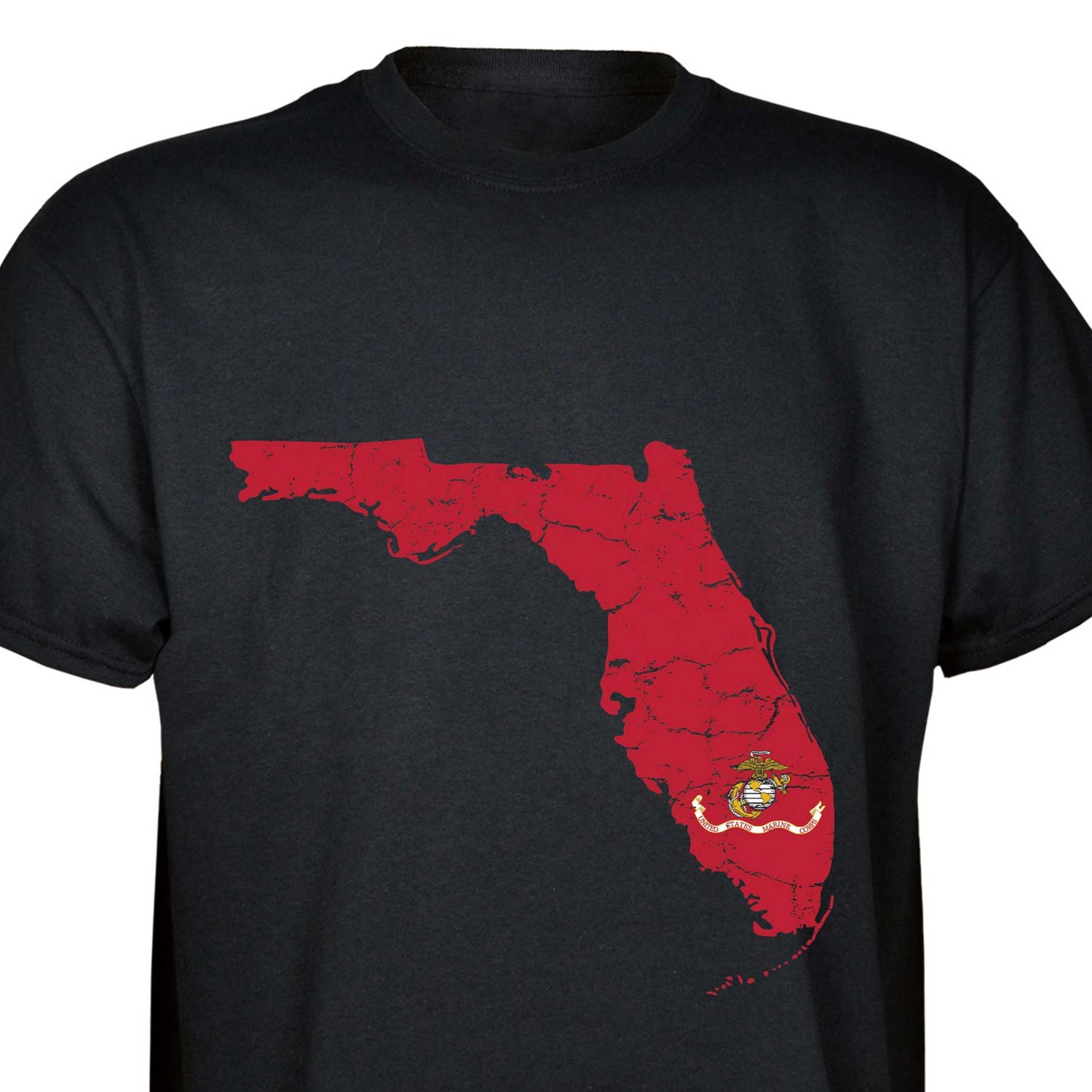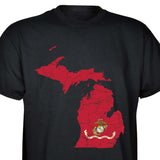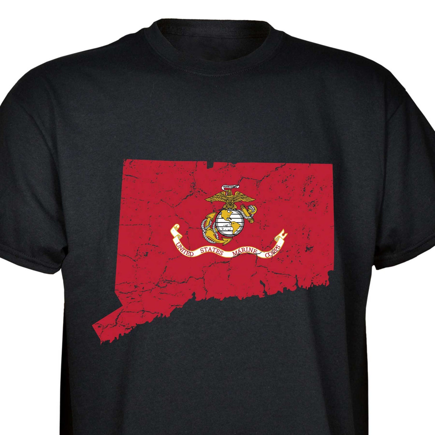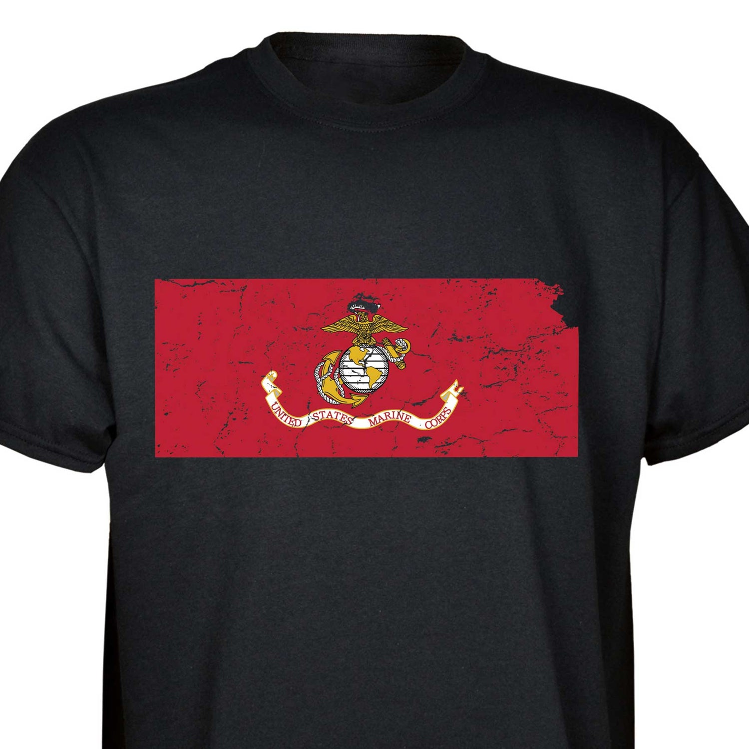 Our customizable Marine Corps Choose-Your-State T-shirt from SGT GRIT allows you to choose your home state, which then becomes the center-front red graphic on this black short-sleeve crewneck tee. The vintage-look design includes a Marine Corps EGA emblem at the center of your state. Sizes range from small to 5X. This SGT GRIT Exclusive is made of 100% pre-shrunk cotton.