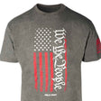 Embrace your patriotism with our "We The People Flag" T-shirt. This charcoal heather tee, made from a soft 50% ring spun cotton and 50% polyester blend, proudly features a vertical American flag and the iconic phrase "We The People" on the front. Adding to its patriotic appeal, a red USA flag is tastefully printed on the left sleeve. Perfect for expressing your American pride while ensuring comfort and durability.