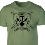 Your USMC collection won't truly be complete until you add this great T-shirt. This t-shirt features the 12th Marines Regimental Marines patch that can be personalized with your location and year.