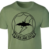 Your USMC collection won't truly be complete until you add this great T-shirt. This t-shirt features the VMA(AW)-242 patch that can be personalized with your location and year.