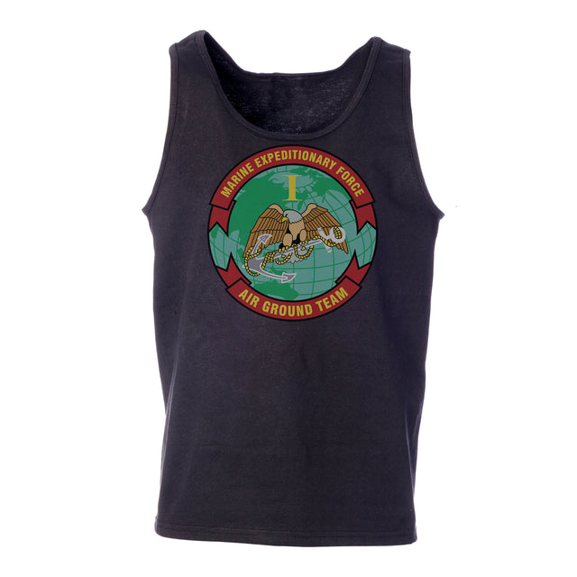 Your USMC collection won't truly be complete until you add this great Tank Top. This shirt features the 1st MEF Air Ground Team Marines patch and can be personalized with your location and year.