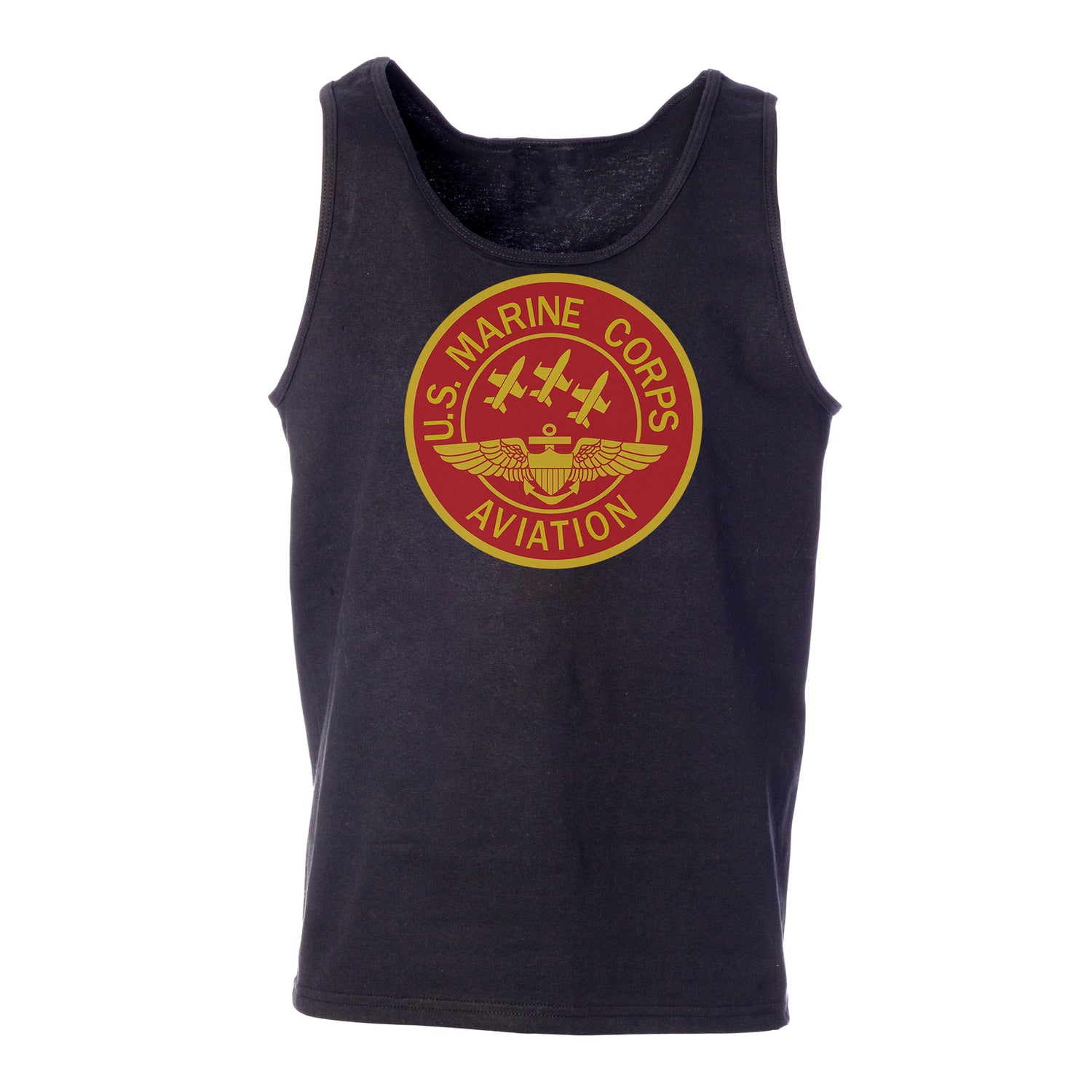 Your USMC collection won't truly be complete until you add this great Tank Top. This shirt features the Red Marine Corps Aviation patch and can be personalized with your location and year.