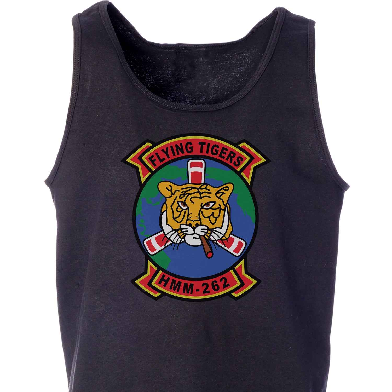 Your USMC collection won't truly be complete until you add this great Tank Top. This shirt features the HMM-262 Flying Tigers patch and can be personalized with your location and year.