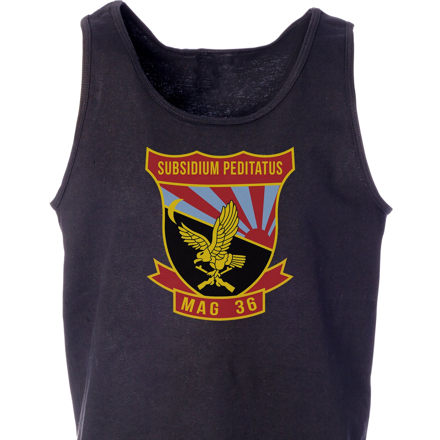 Your USMC collection won't truly be complete until you add this great Tank Top. This shirt features the MAG-36 patch and can be personalized with your location and year.