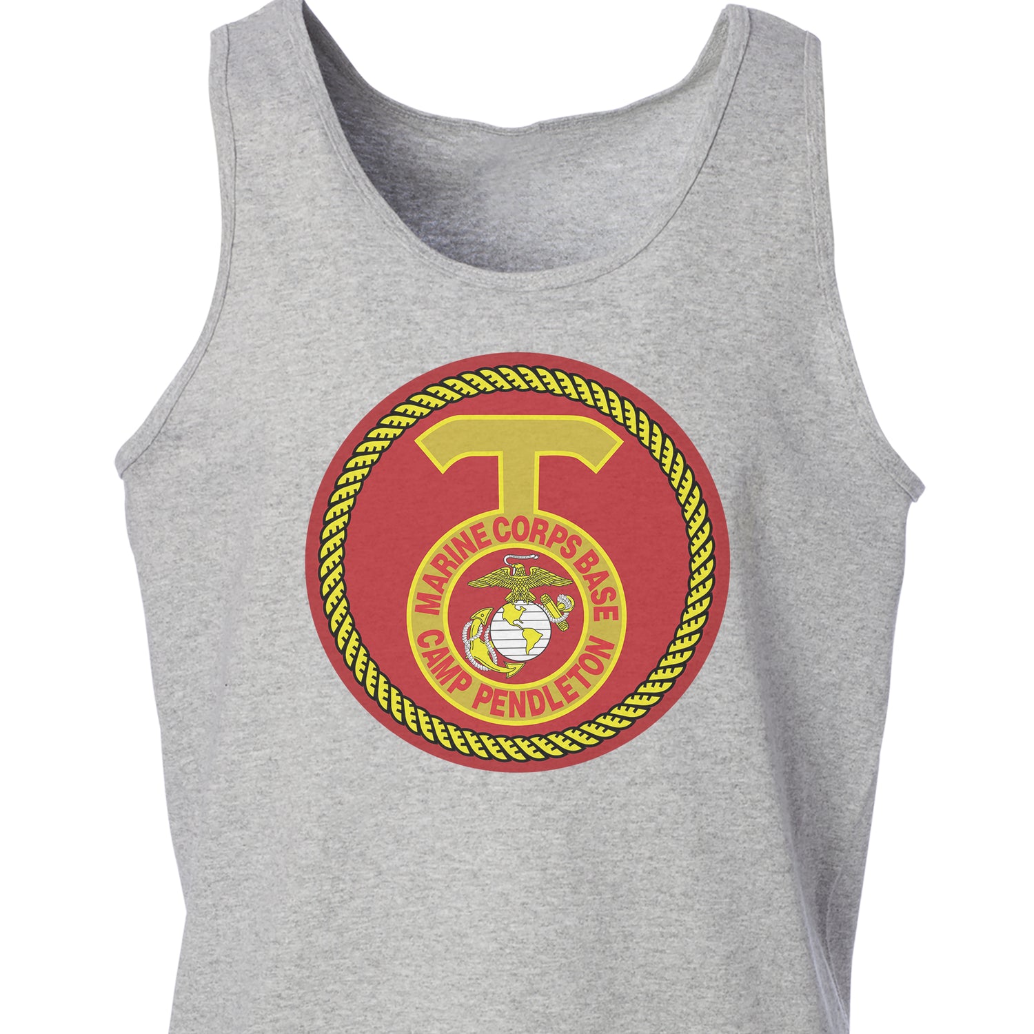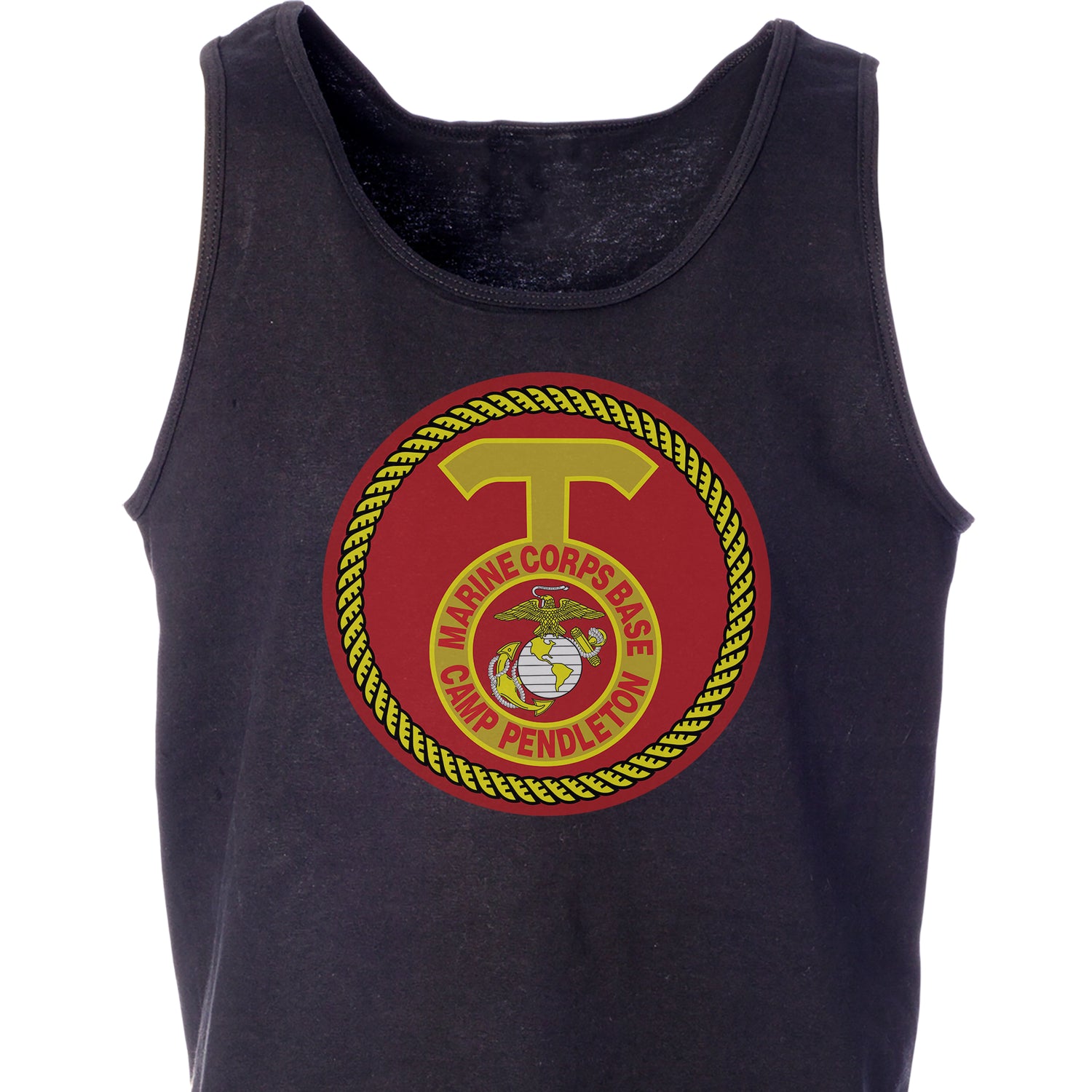 Your USMC collection won't truly be complete until you add this great Tank Top. This shirt features the Marine Corps Base Camp Pendleton patch and can be personalized with your location and year.