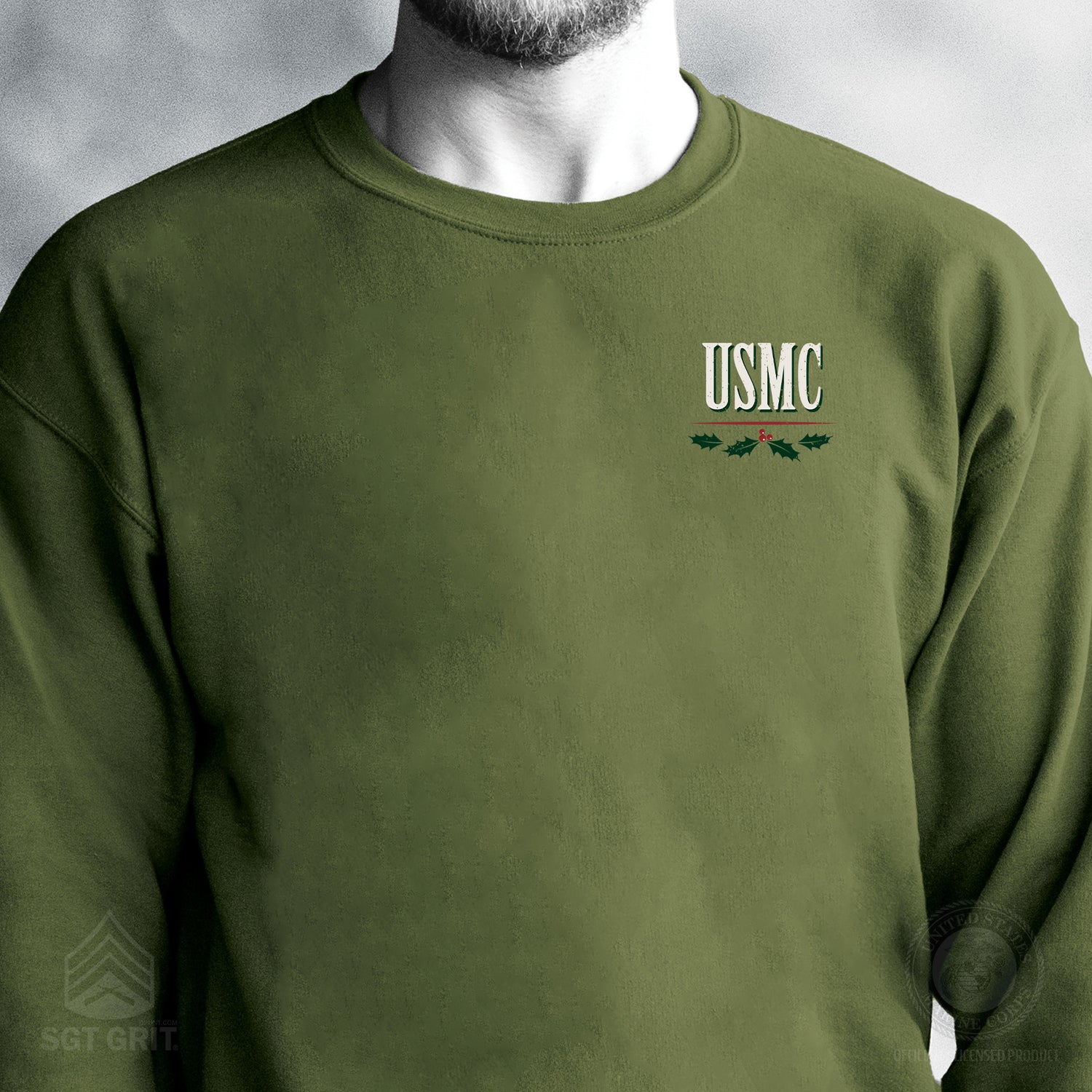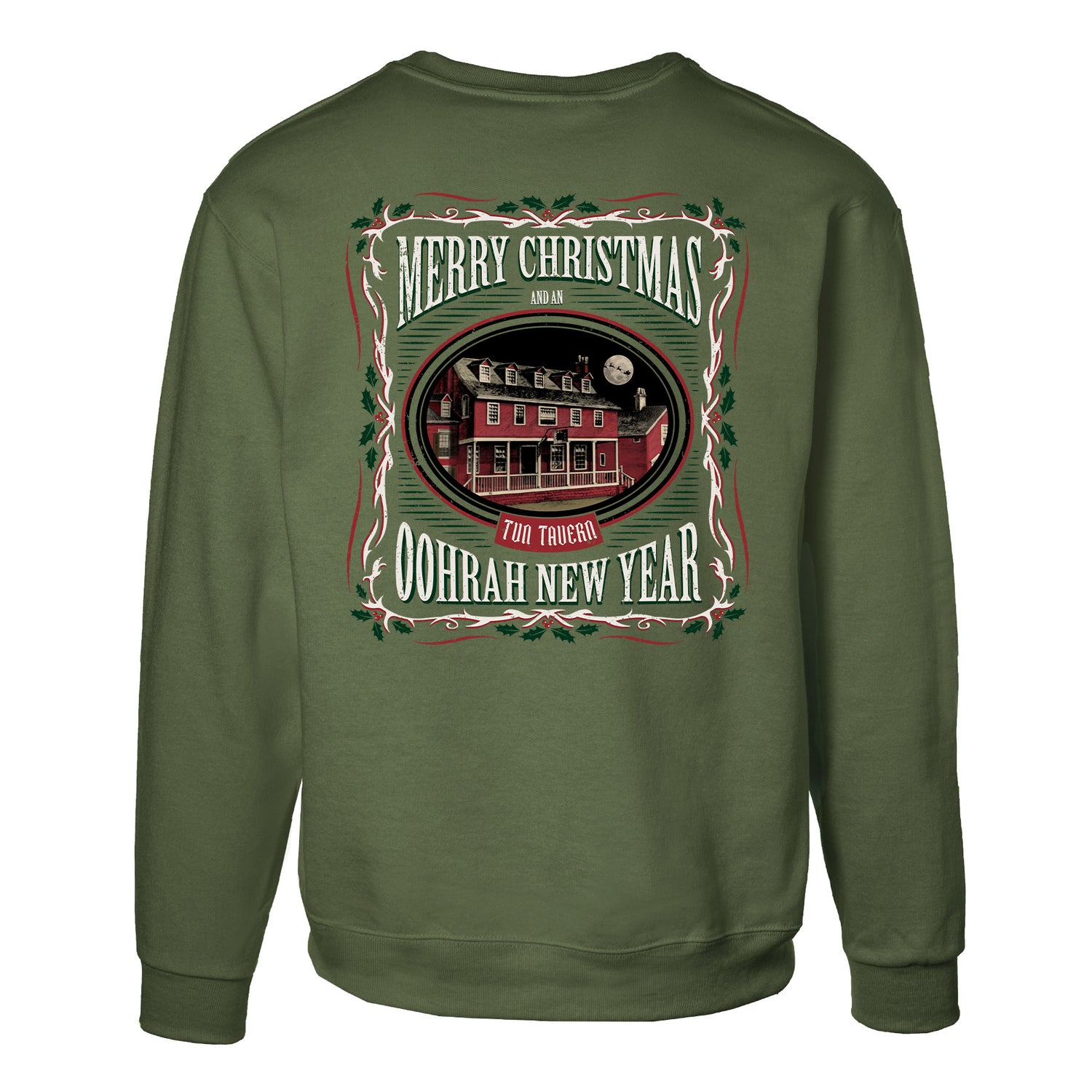 USMC Tun Tavern Christmas Sweatshirt Back Design- OD Green